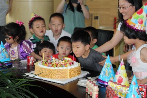 The children volunteer to blow out candles to celebrate Children’s Day.
