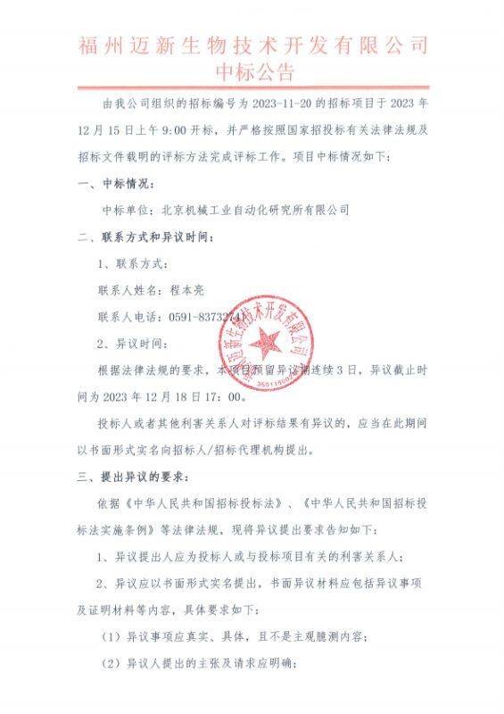 News and Information Fuzhou Maixin Biotechnology Development Co., Ltd. – Announcement of Winning Bid for Production Management and Quality Inspection Management Software Project Posted by bloomingrose1258@gmail.com 28 1 月, 2026 On 28 1 月, 2026 0