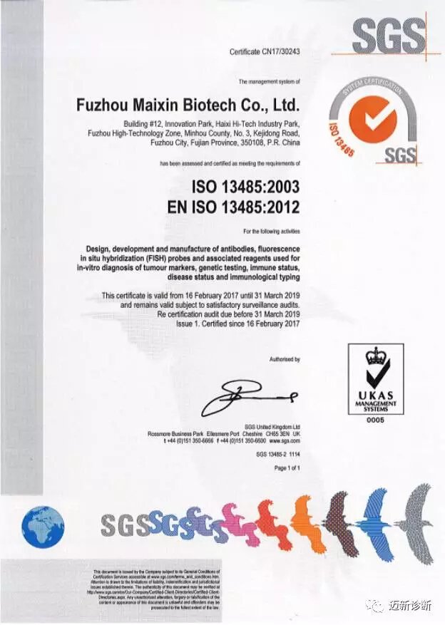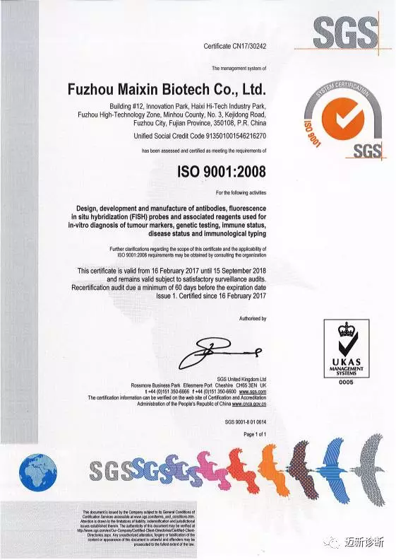 To further standardize production operation procedures, effectively control risks, improve operational efficiency, and establish a standardized and normalized management model, Fuzhou Maixin Biotechnology Development Co., Ltd. began implementing the ISO9001 and ISO13485 quality management systems in 2016, and successfully passed the audit and certification for ISO9001:2008 and ISO13485:2003.