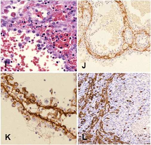 Figure 2C, CD34 shows positivity in endothelial cells;