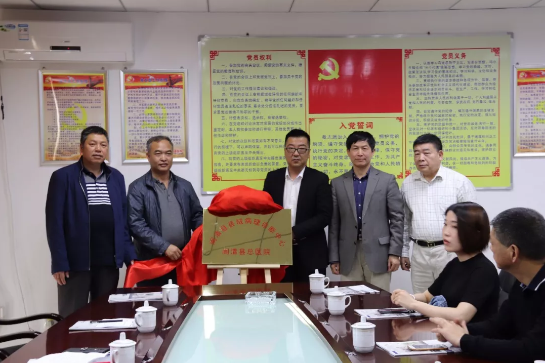 At 11:00 AM on April 10, 2018, the Minqing County General Hospital Regional Pathology Diagnosis Center was officially inaugurated. Attending the signing and unveiling ceremony were Huang Qingui, President of Minqing County General Hospital; Peng Lianguo, Deputy Director of the Minqing County Health Bureau; Yu Yinghao, Director and Chairman of the Fujian Pathology Branch of the Chinese Medical Association; and Fu Xuedong, Head of the Fuzhou Maixin Pathology Diagnosis Center.