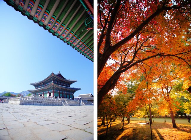 The solemn and dignified Blue House, the magnificent Gyeongbokgung Palace, and the fiery red maple leaves of Nami Island—various typical Korean-style buildings mixed with falling leaves from various trees create an ultimate romantic atmosphere!