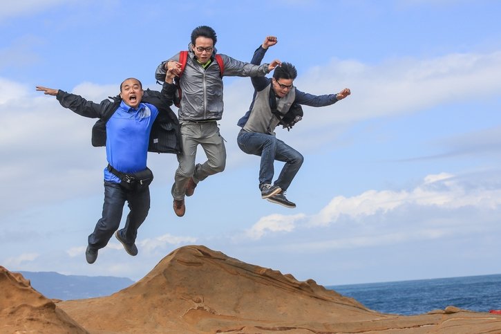 It was time for lunch, but Leilei and Xiao Shen were missing from the dining table. Where had they gone? It turned out that after the bumpy journey, both of them were too dizzy to move, slumped at the next table. Seeing them unable to eat or drink anything, their colleagues felt very sorry for them and kept offering hot tea and soup… In the afternoon, we arrived at our second stop of the day—Tamsui Fisherman’s Wharf, located by the sea at the northern end of Taipei City. The first group photo amidst the fun! |