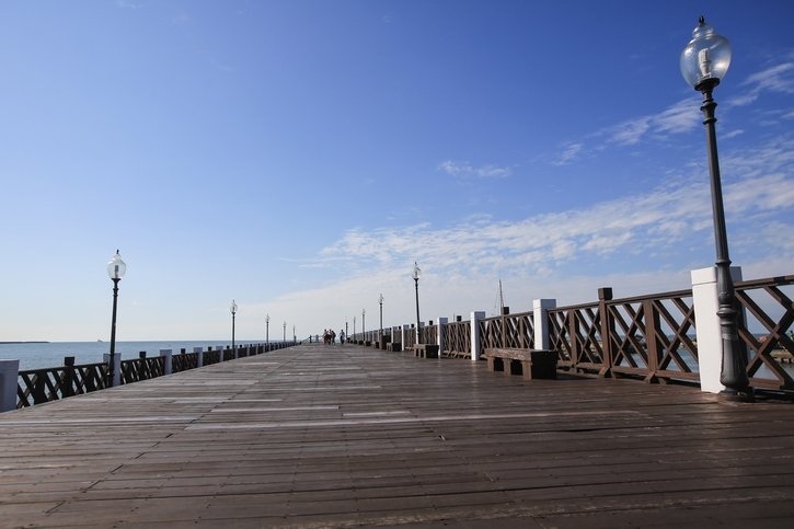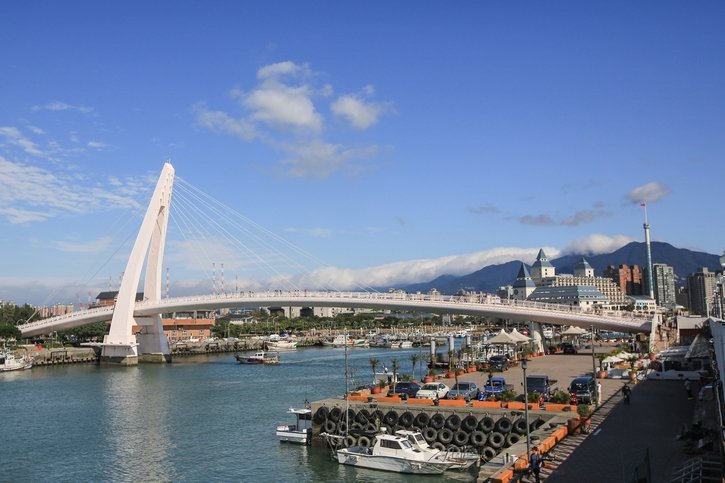 | Fisherman’s Wharf features a beautiful floating pier, a long wooden boardwalk, and a large harbor park, forming a circular route that allows people to perfectly and smoothly experience the fishing port ambiance. At Tamsui Fisherman’s Wharf, the Lover’s Bridge connects the harbor park and the floating pier’s wooden boardwalk. The bridge is a white cable-stayed structure, offering views of the Tamsui River estuary and the boundless sea. |