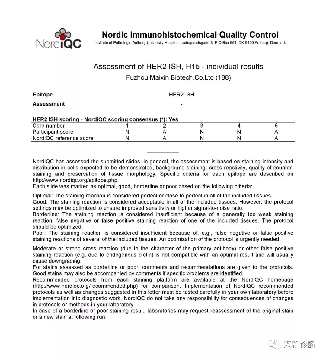 NordiQC, the Nordic Immunohistochemistry Quality Control Center, is one of the internationally authoritative inter-laboratory quality assessment organizations for pathology. It has long been committed to promoting the standardization of immunohistochemistry processes and the optimization of experimental conditions. Maxin has consistently paid attention to its activities and actively participated in its related inter-laboratory quality assessment activities in recent years, achieving excellent results. We are pleased to announce that our company has once again achieved outstanding performance in this year’s NordiQC inter-laboratory assessment activities: General-Run55, Breast-Run B27, and HER2-Run H15. The evaluation results for HER2 (IHC/ISH), ER, SOX10, WT-1, CK5, Bcl-6, and ASMA antibodies were all excellent, successfully passing the assessment.