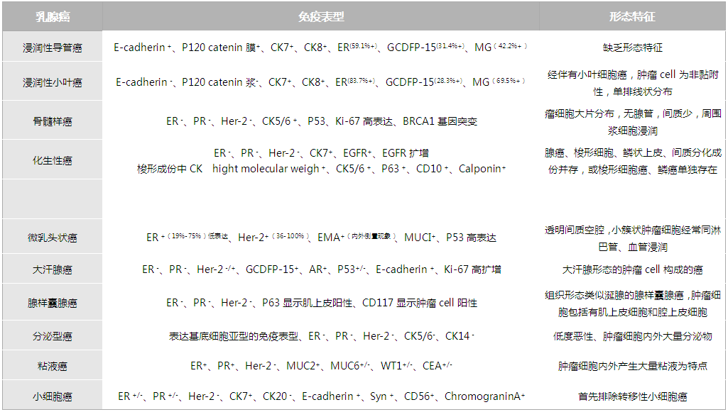 Table II. Immunophenotypic and Morphological Characteristics of Some Subtypes of Breast Cancer