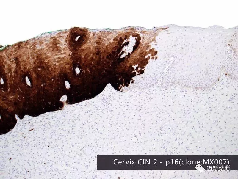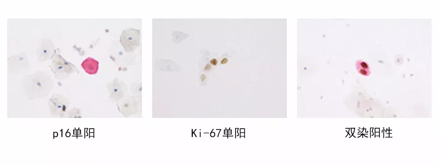 The p16 gene is a typical representative of cyclin-dependent kinase inhibitors. Overexpression of p16 indicates that cells are in the cell cycle arrest phase and can serve as a marker for cervical lesions. Ki-67 is a nuclear antigen gene marking cell cycle progression and proliferating cells, with its overexpression indicating cells are in the proliferation phase. Simultaneous overexpression of p16 and Ki-67 suggests dysregulation of the cell cycle. Detecting both p16 and Ki-67 in the same cell can serve as a marker for cell cycle dysregulation, associated with carcinogenic transformation induced by high-risk HPV viruses, helping to identify true lesion cells independently of morphological examination results. A positive p16/Ki-67 test strongly suggests high-grade lesions, providing an objective detection indicator to distinguish women with potential high-grade lesions.